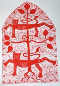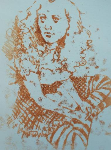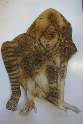 RED RIDING HOOD Plate and print, plate made with shingle from my parent's garden printed with earth from the garden.