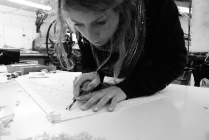In 2008 Kate fell in love with printmaking, she is currently working on a handmade book called GREAT LIVES OF THE ARTISTS, inspired by the cult of the celebrity artist from Vasari's Lives of the Great Artists to the contemporary fascination with the drunken antics of the YBAs. It is an exploration of the historical role of printmaking and the differences between conceptual art and craft.
